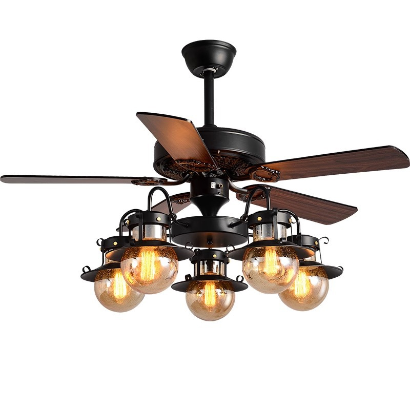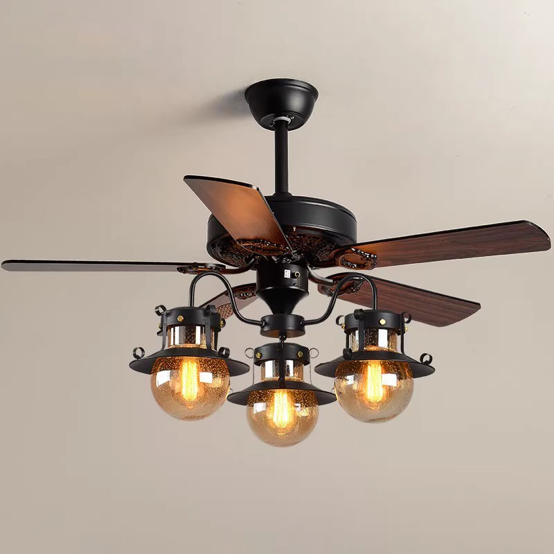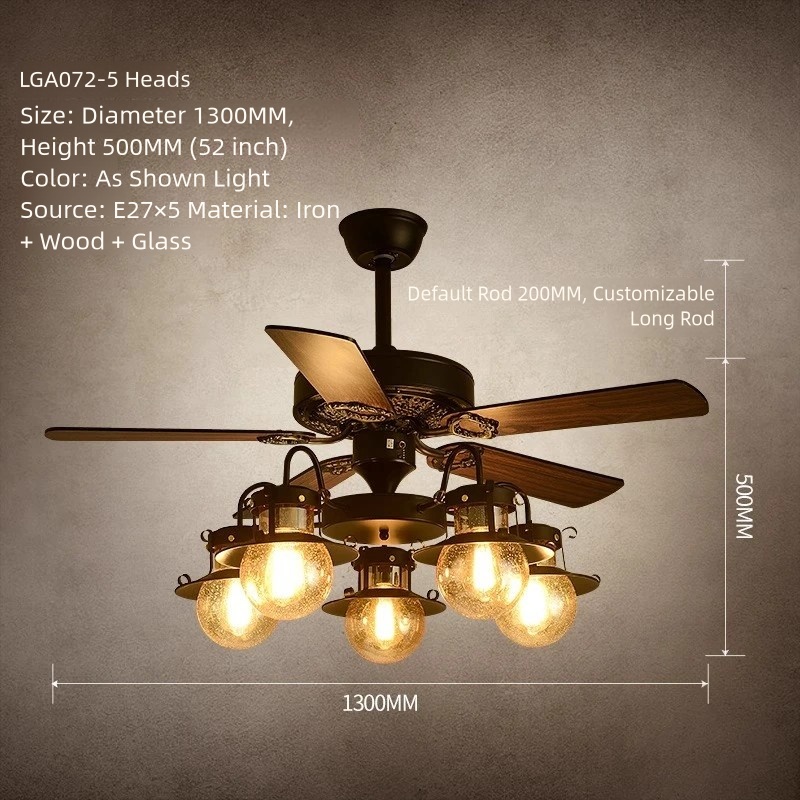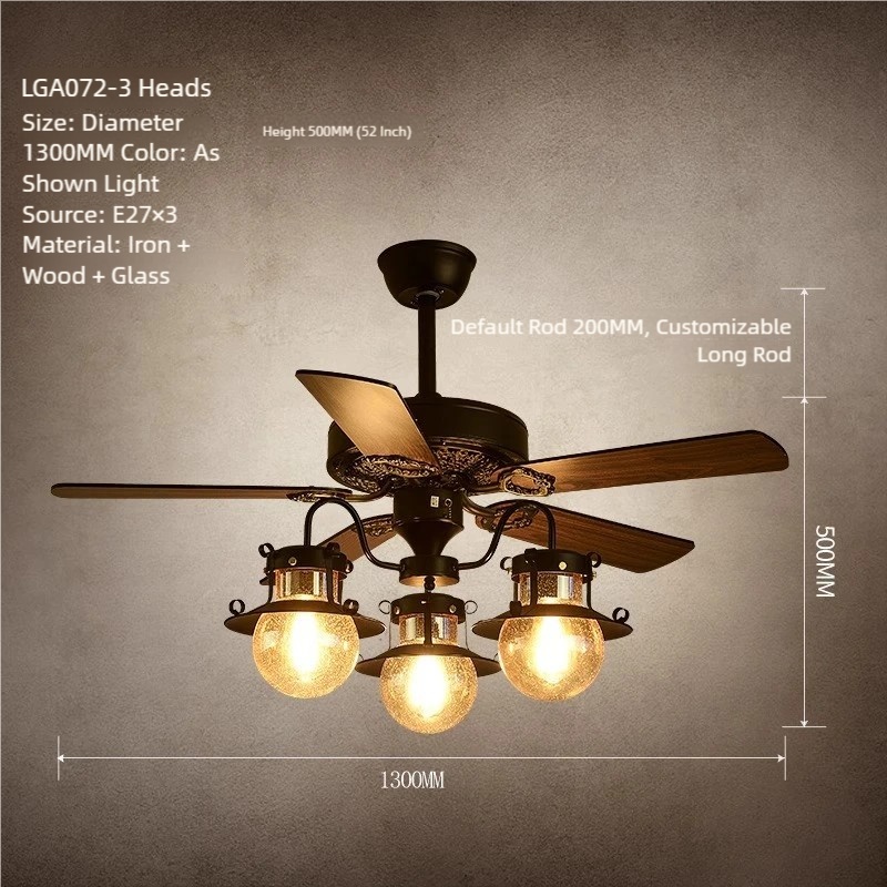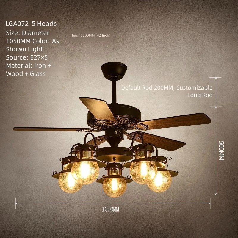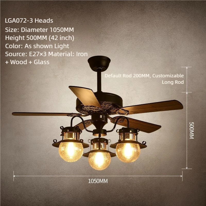 American Retro Ceiling Fan with Light – Suitable for Living Room, Bedroom, Industrial Style (Wooden Blade) Ceiling Fan Light for Dining Room and Hot Pot Restaurant