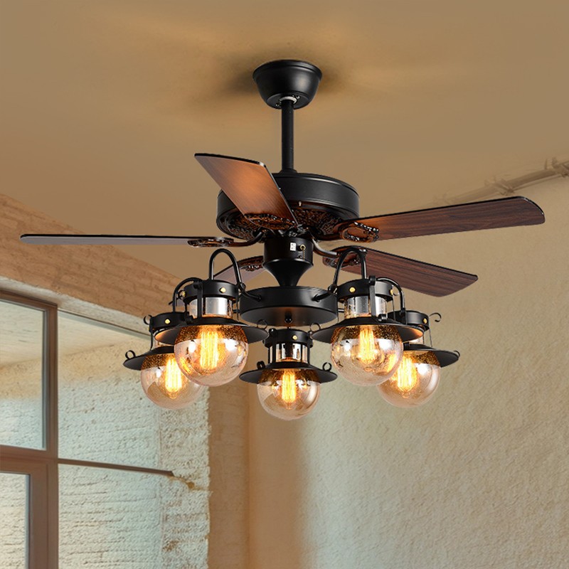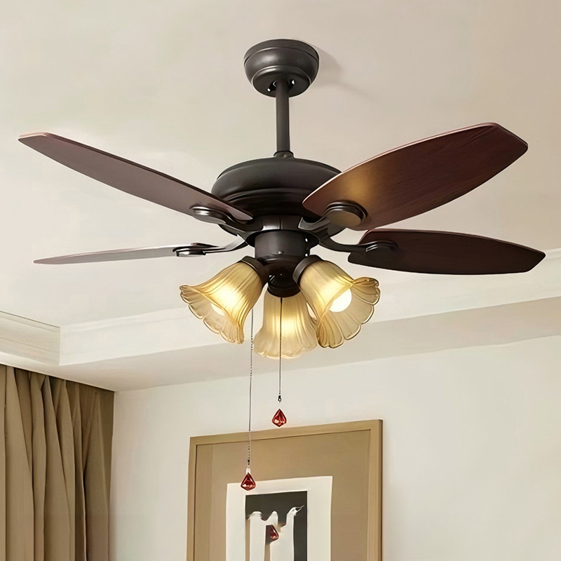 American Retro Ceiling Fan with Light – Suitable for Living Room, Bedroom, Industrial Style (Wooden Blade) Ceiling Fan Light for Dining Room and Hot Pot Restaurant